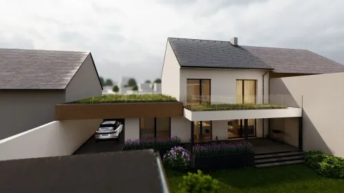 - Fotovoltaika - Fotovoltaické panely umístěné na šikmé střeše do zahrady s výkonem min. 7kWp (cca 16ks) hybridním střídačem a baterií s kapacitou 7kW, aby získala nejvyšší dotaci. Extra dotace na nabíječku elektro-auta v garáži.