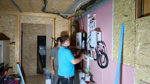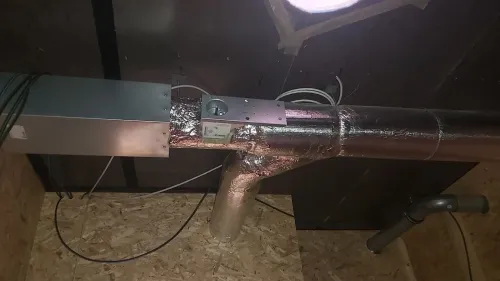 | REKUPERACE TEPLÉ VODY | Rekuperace teplé vody ze 2 sprch pomocí měděného válcového výměníku umístěného v garáži. |